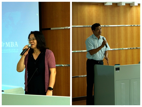 郭桂杭院长代表学院致辞,对全体2017级研究生新生表示热烈欢迎。他详细介绍了我院的的成立及发展历史,回答了“我们是谁”的问题;解读了我院本硕博士点的数量及发展趋势,回答了“发展状况”的问题;阐述了商务英语专业属于语言专业而非商科专业的本质属性,回答了“商英究竟做什么”的问题。郭桂杭重点强调了研究生追求学问的使命,鼓励学生应以批判性思维进行学习和钻研,并提醒研究生新生要注意学业与工作的平衡,最后寄语全体研究生做“好学、好问、好思”的三好学生,祝愿所有新生拥有充实圆满的研究生生活。