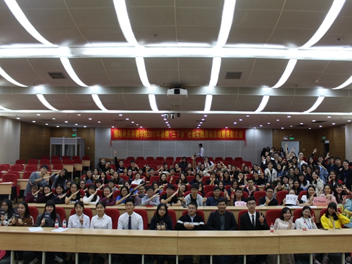 11月21号晚上7点,2017年国际商务英语学院暑期“三下乡”社会实践活动总结暨表彰大会在图书馆负一层报告厅举行。国际商务英语学院党委副书记张林茂和部分辅导员参加表彰并为获奖队伍或个人颁奖。