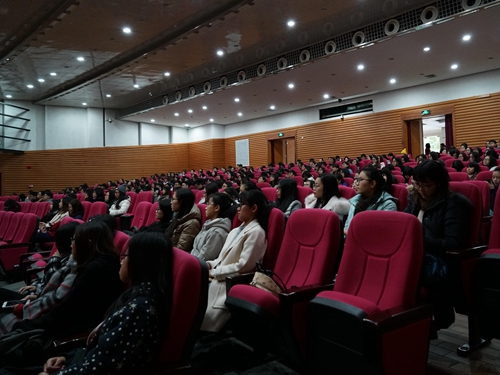 1月8日下午2点,由商英学院举办的演讲技巧与企业创新实践讲座在北六教报告厅举行。陆璐、曾成两位老师作为主讲人参与讲座,杨丽老师主持了本次讲座。本次讲座主要面向商英学院2016级本科生,旨在让同学们通过两位优秀老师的发言了解更多演讲知识,掌握更多演讲技巧,更好地为商务英语实践大赛做准备。