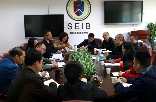 1月24日,经贸学院院长张建武、党委书记梁洁带领学院班子成员一行到访我院,协商如何相互协作共同办好国际商务硕士(MIB)专业。商英学院郭桂杭院长、党委书记王秀民与其他全部班子成员参加研讨。