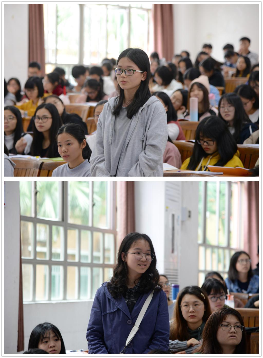 随后,商务英语(国际商务管理)杨丽主任、商务英语(国际经济法)张新红主任、商务英语(国际金融)汪谓超主任、国际商务系黄晓艳主任以及商务英语(国际贸易)代理主任李冬云分别耐心细致地为同学们介绍了不同专业方向的主要学习内容与要求,并从课程设置方面讲解各方向的异同。最后针对大部分同学最关心的就业去向问题,各位老师也与同学们分享了往届学长学姐们的就业情况和留学考研的经历。在老师们的介绍结束后,学生们积极踊跃地向老师们提出了自己的疑惑,涉及辅修、学习技巧上等各个方面,各位老师们都一一给予了详细、专业的解答,消除了学生们的困惑,坚定了他们的信心。