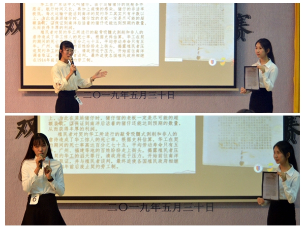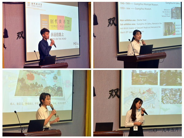 5月30日19:30,第四届“不朽古韵,青春传承”博物馆双语讲解大赛决赛在水上报告厅顺利举行,广州博物馆乔婧婧,孙中山大元帅府纪念馆朱志龙,广东华侨博物馆陈佩琳三位专业讲解员和我院尹业梅、石静两位老师担任评委。