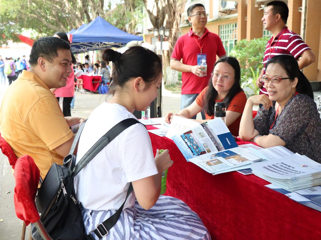 在场老师和学生志愿者就家长们感兴趣的专业特点、出国境交换和就业等情况进行详细解答,家长们认真聆听,对老师同学们的讲解给予了高度的肯定。
