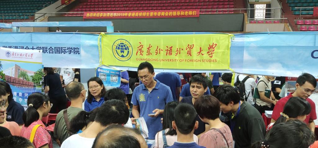 26日上午,招宣小组一行参加了在清远市体育馆举行的清远市2019年普通高校招生现场咨询会,来自省内外100多所高校的招生负责人到场为清远学子填报志愿支招,数千人次到场咨询。我校招宣小组成员针对学校招生政策变化、招生计划及志愿填报等注意事项与考生和家长进行了深入交流,耐心细致地解答了考生及家长的各种疑虑,帮助广大考生和家长全面、及时、准确地了解广外,合理填报志愿。