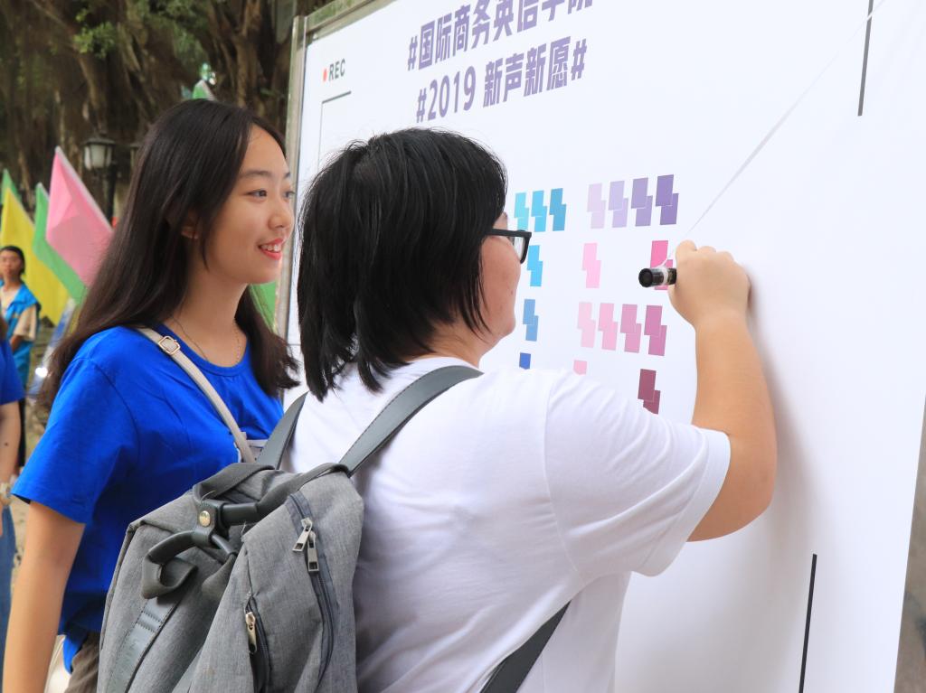 为方便2019级新生快速、有序、高效办理报到手续,商英学院组织了大批志愿者到广州火车站和校园各个角落,为新生指引路线、搬运行李、答疑解惑,他们热情、周到、细致的服务获得了新生和家长的一致好评,还有商英记者行走校道和宿舍楼对新生进行采访。今年,除了精心制作的路标、立宣以及签名墙之外,我院首次在登记点设立便签墙和抽奖盒,商英新生可以在便签墙上写下新学期寄语,也可以通过抽日历的方式参与抽奖,学生和家长的笑容是对学院精心策划最好的肯定。