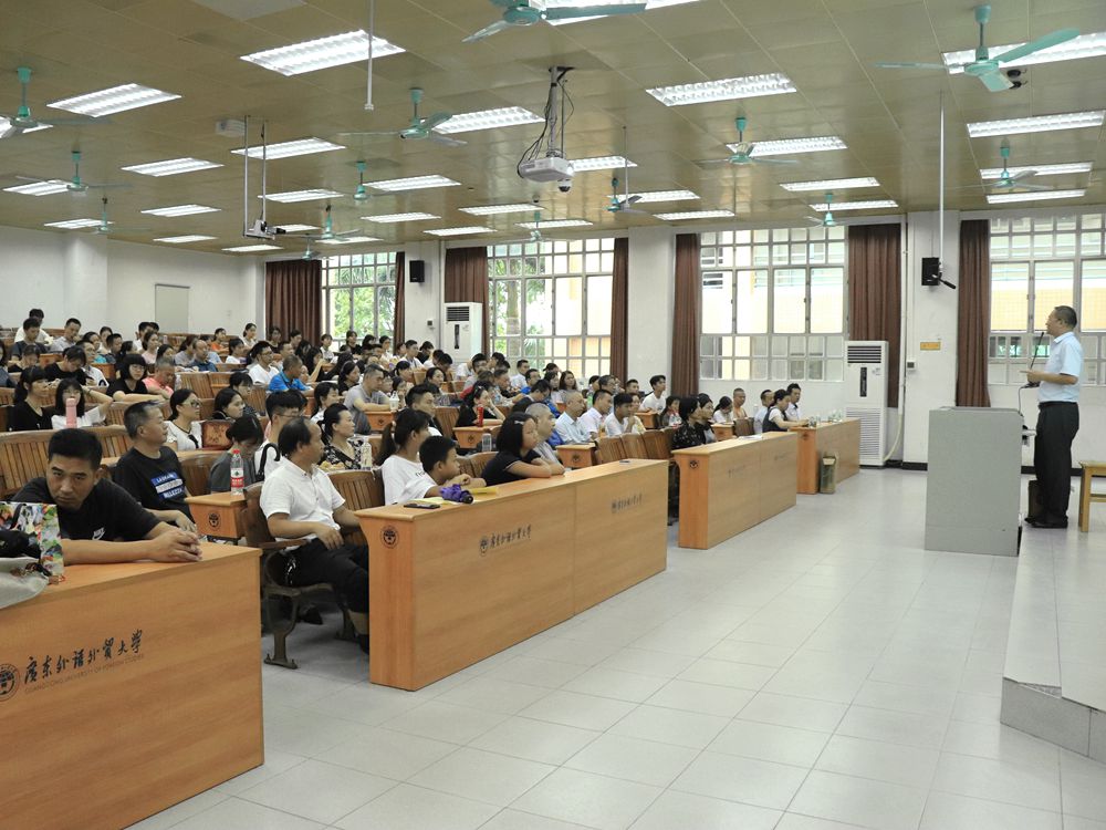 为深入贯彻落实“家校联动教育”理念,下午三点我院在二教219举行了2019级本科新生家长见面会暨创新班选拔宣讲大会。李江副书记对学院基本情况和管理要求介绍进行说明,他指出国际商务英语是将英语作为特色专业建设的学科翘楚,师资力量雄厚,毕业生就业率极高。彭玲玲副院长简单介绍了创新班的课程情况和培养要求,英国CIMA管理工会华南地区负责人对CGMA创新班进行深入推介。本次会议是商英第三年举行的新生家长见面会,将有利于提升教育合力,凝聚力量,家校同行,共育商英新时代人才。