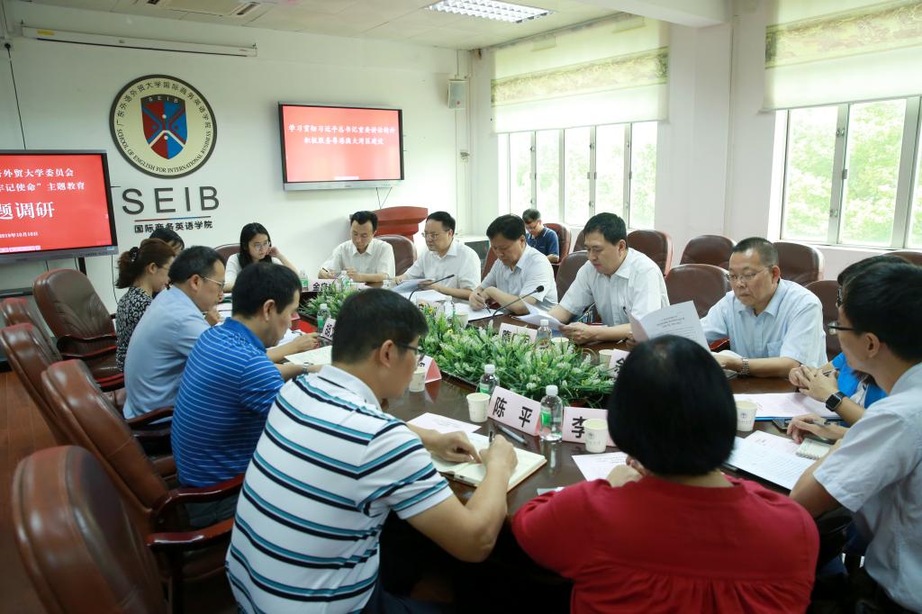 为深入贯彻落实习近平总书记在“不忘初心、牢记使命”主题教育工作会议上的重要讲话精神,根据学校主题教育实施方案要求,10月10日上午,围绕“学习贯彻习近平总书记重要讲话精神、积极服务粤港澳大湾区建设”的主题,学校在我院318会议室开展主题教育专题调研。省委第十一巡回指导组,学校党委书记隋广军、校长石佑启,各相关部处负责人,我院党委书记王秀民、院长郭桂杭等各单位负责人参加调研。