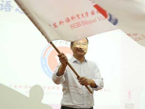李江为双语志愿服务队授旗