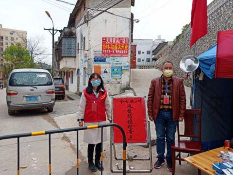 曾紫桐在社区关卡值班
