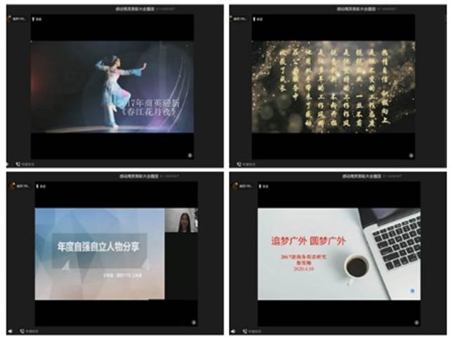 为发挥校园榜样的示范和带动作用,弘扬商英学子“自强不息、追求卓越”的精神品质,4月30日下午,“爱国力行 青春榜样”第二届“新联盟·感动商英”十大人物表彰大会暨国奖分享会在线上召开。商英学院党委书记王秀民与17级辅导员魏煊出席会议,“凤鸣广外十佳青年”鲁雪梅、国家奖学金获得者黄金钏、国家励志奖学金获得者王咏薇进行分享。