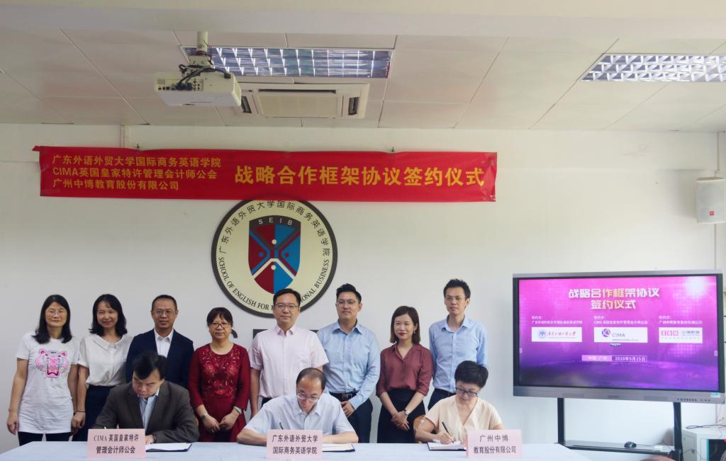 商英学院与CIMA英国皇家特许管理会计师公会、广州中博教育股份有限公司签订战略合作框架协议