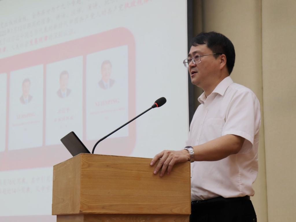 为深入学习习近平新时代中国特色社会主义思想和党的十九大精神,认真贯彻落实习近平总书记关于青年工作的重要思想,进一步推动青年马克思主义者培养事业的发展,11月19日下午,商英学院于北校区图书馆报告厅举办“传承红色基因,练就过硬本领”第三期“青年马克思主义者培养工程班”(以下简称“青马班”)开班仪式暨《习近平谈治国理政》第三卷专题讲座。校思想宣讲团成员、教学质量评估中心主任袁长青教授为大家授课,学院党委书记王秀民、党委副书记陈静、副处级组织员尚丹、辅导员魏煊、莫小俊等出席仪式。