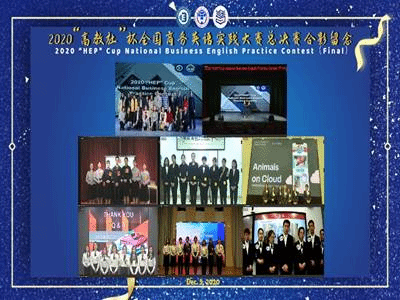 2020年12月5日,2020“高教社”杯全国商务英语实践大赛总决赛在广东外语外贸大学举行。来自江西师范大学、北京林业大学、四川外国语大学、广东外语外贸大学、上海对外经贸大学、广东技术师范大学的六支队伍在多次比拼中脱颖而出晋级决赛。校党委副书记李云明、学生处副处长叶开、教务处副处长迟殿堂、商英学院院长郭桂杭、学院党委书记王秀民、学院党委副书记陈静、学院副院长彭玲玲以及福建亿学教育科技集团区域销售总监谢平应邀出席,来自高校和业界的7位知名教授、高管担任大赛评委。来自广东技术师范大学的队伍The Waves凭借优异的表现,勇夺全国总冠军。