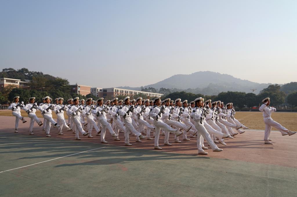 1月15日9:00,北校区2020级本科学生军训汇报表演暨总结表彰大会在操场隆重举行。广东外语外贸大学校长石佑启,校党委副书记、校军训领导小组组长李云明,校党委常委、副校长焦方太,广东省国防教育办公室副主任陈英闻及广州市番禺区人民武装部副部长王峰等检阅军训队伍。出席本次大会的还有学校军训领导小组各成员、各学院的领导和老师们。部分学生家长也在遵守防疫规定的前提下参加了活动。