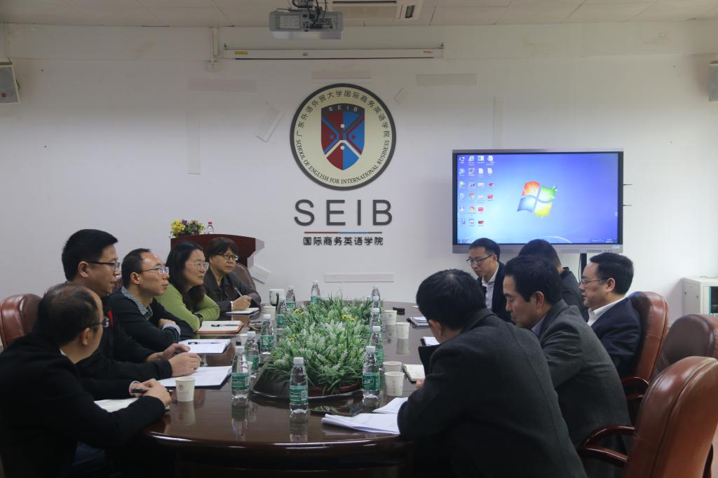 3月1日上午,广东外语外贸大学校长石佑启率大学相关部门负责人莅临我院检查开学工作,商英学院领导班子到会并汇报工作。