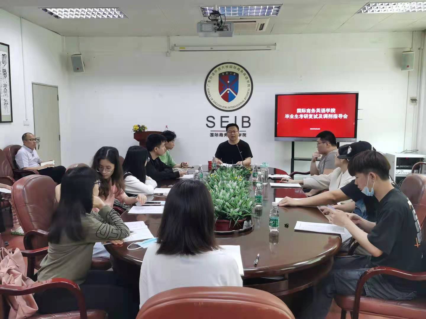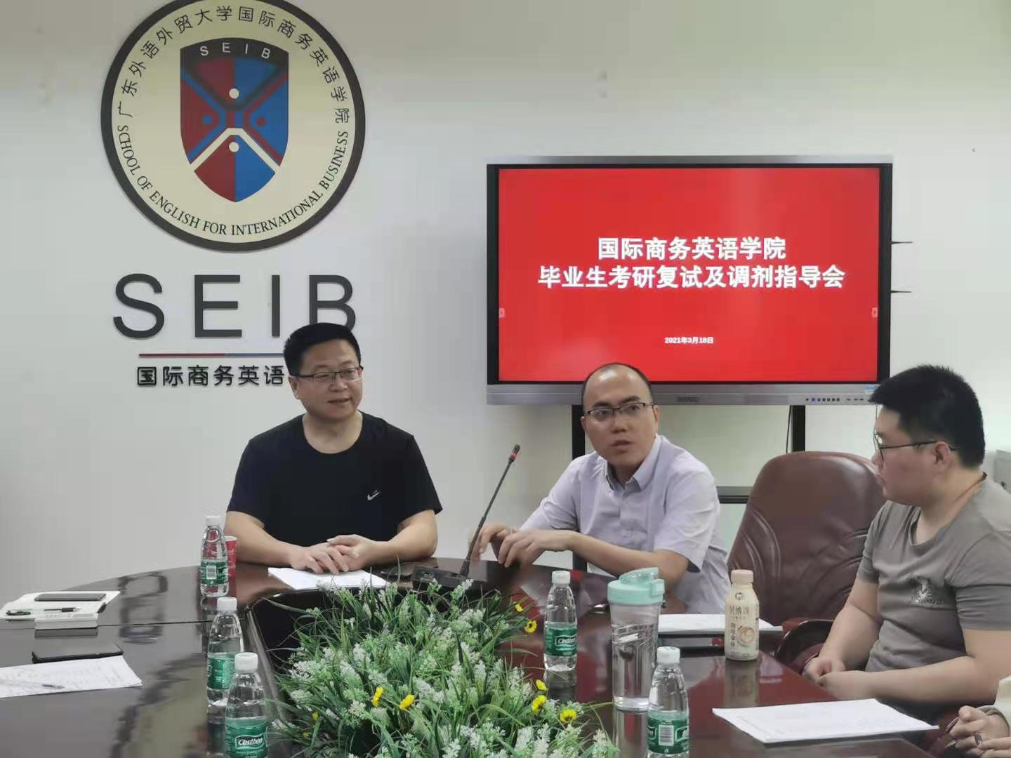 2021年3月18日,商英学院在三教318会议室召开了本科生考研复试及调剂指导会。学院副院长胡春雨、院党委副书记陈静出席了指导会并对学生进行培训。