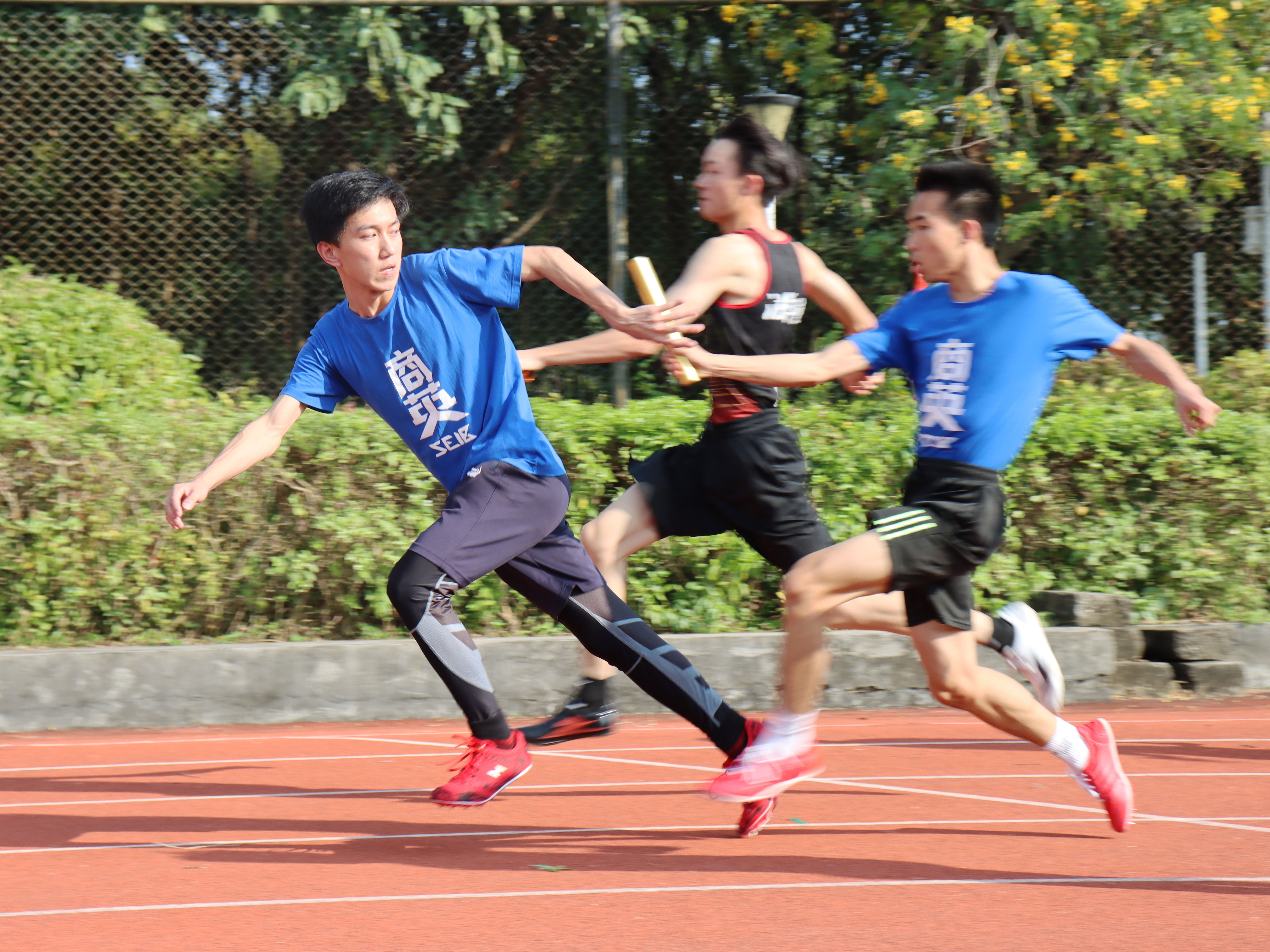 接力赛场上的商英运动员