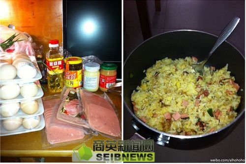 好男人要会做饭 左:做“壮明治”准备的食材 右:自制蛋炒饭