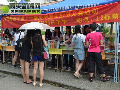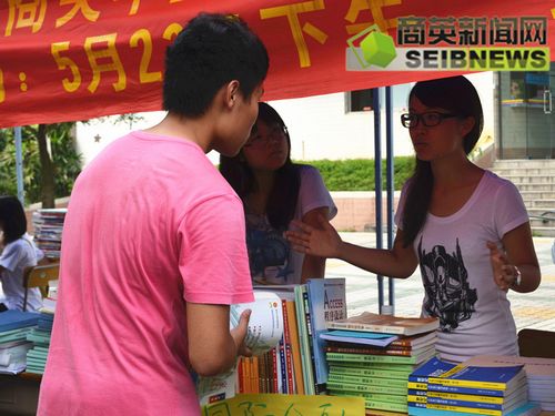 本次义卖活动通过收集商英09届毕业生的旧书,包括各专业的教材、考试资料以及课外书籍等,进行分类整理,低价出售。其种类繁多,价格低廉,深受低年级学生的关注。在义卖的摊位前,买书的学生络绎不绝,争相购买,尤其是大一的学生,他们大多数满载而归。尽管天气闷热,义卖队员们依旧耐心而细致地介绍各类书籍,解答疑问,在服务过程中不忘带着微笑。