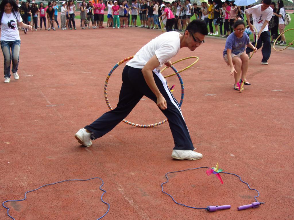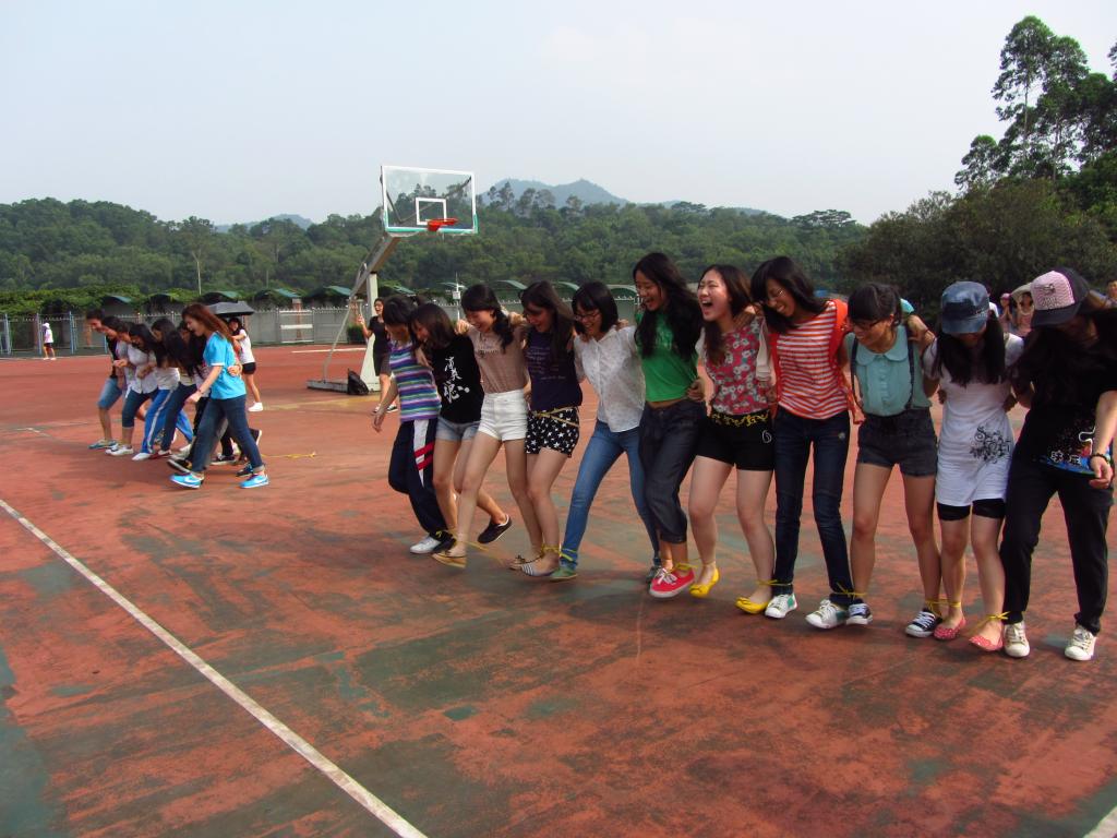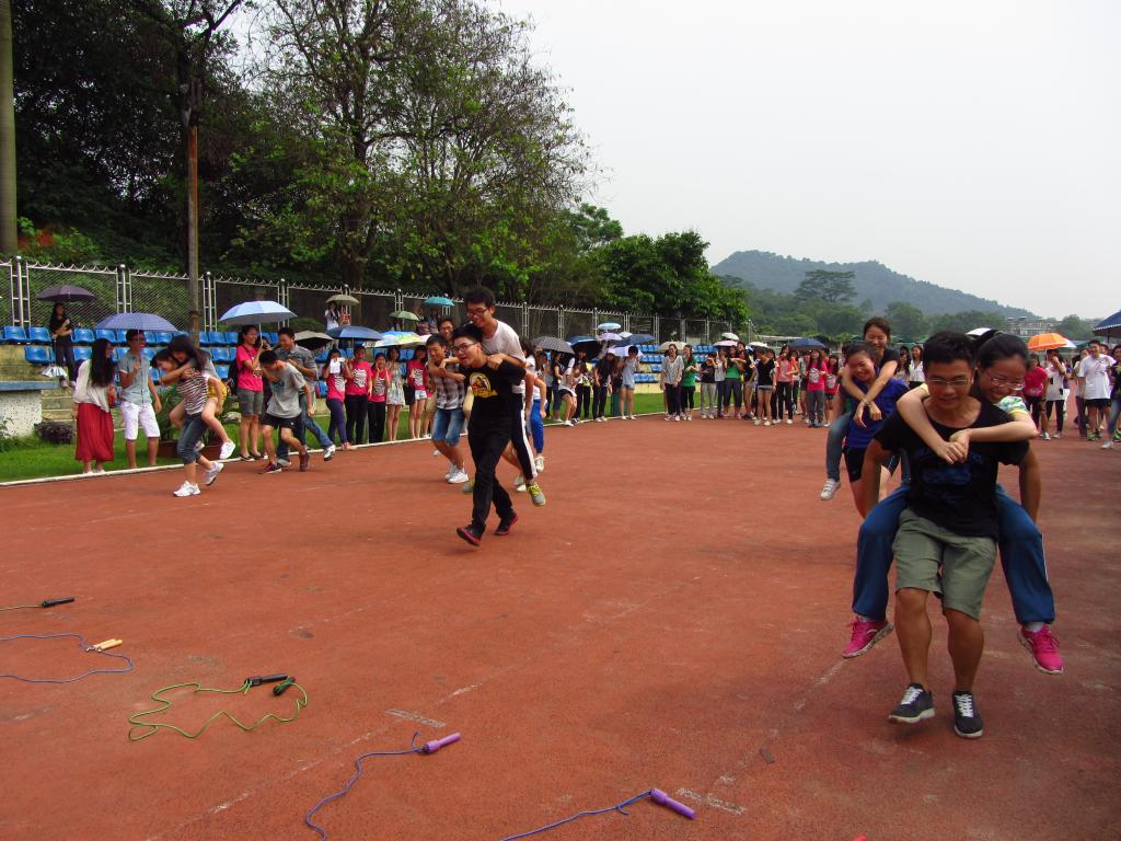 2013年5月23日下午2点半,国际商务英语学院2011级趣味运动会于财院运动场如期举行。本次比赛16个班分8个参赛小组,通过完成“趣味大接力”、“乒乓球转转”、“相扶前进”、“圈圈圆圆圈圈”以及“11人12足”等游戏获得相应分数。商英学院团委书记、2011级辅导员陈娓来到运动场为运动健儿们打气加油,她强调友谊第一、比赛第二的运动精神,并叮嘱运动员们注意安全。天气虽炎热,却抵挡不了同学们参与比赛的热情。