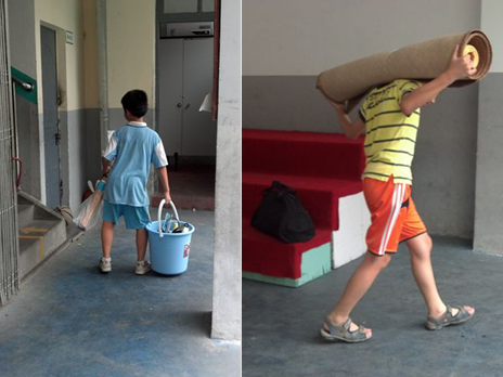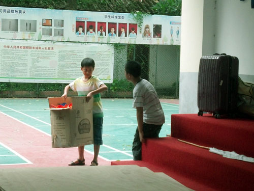 站在楼下等候,几个小男孩小炮弹般飞奔到行李旁,拖着比他们矮不了多少的行李箱,提起大大的水桶,甚至把竹席往背上一扛,雄赳赳气昂昂地往楼上大步走去。小男子汉们争先恐后地帮我们搬行李,开始很吃惊很担心,怕那么重的行李把他们压坏了。后来一想,他们已经开始有成为大男生的觉悟了,表现出某种照顾女生的绅士风度,不禁无奈又欣慰地一笑。接下来的十四天,就要与他们朝夕相处,将会收获怎样的期待呢?