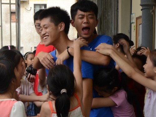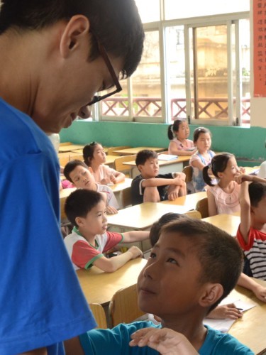 下课了,他们就像一群饥渴的蜜蜂一样,“嗡嗡嗡嗡”地围着你转,而此是的你就是他们的中心,那朵温暖他们的大红花。他们会问你的童年,会问你的家人,会问你的大学生活,会问你一些你从来没想过的问题。“海豚的超声波和蝙蝠的超声波加起来会有什么现象?”我的百科课代表祥锐问我。我一时反应不过来,傻笑着看着他那双期待的眼睛,回想起开营那天的班会课上,竞选百科科代表失败的他的那双红红的倔强的眼睛。后来,我设了两个百科课代表,就因为他那句“老师,我真的很喜欢百科!”一个四年级的小朋友那份对求知的执着把我深深地震撼了,也许四年级我的那份热情并不弱于祥瑞,只是随着成长,更多的东西使我们无暇顾及。这群充满求知欲的孩子唤醒了我的热情,我们应该追求得更多、更远。所以,不仅是我们能给到他们很多,他们也能给我们很多。在这不长不短的十几天的相处里,我们和孩子们都将会收获很多。