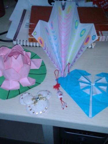 让我感动的,还有孩子们送我的载着满满情谊的小礼物。古斯钰送给我的是精美的孔雀与荷花,吴金颖的是漂亮胸针还有星星,曾俊尧的是新型飞鸟,以及一张张美术课上他们认真画着的“班主任画像”……我像收藏珍品一样收藏着他们送的东西,为日后的回忆提供载体,幻想着将来可以再当一次“三年一班”班主任。