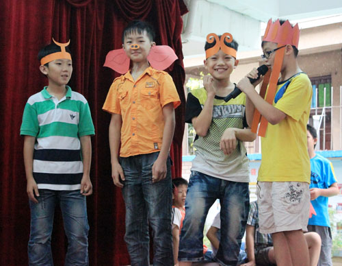 而后上演的是改编自格林童话的《六兄弟》,二年级2班的小朋友演绎了六位王子与自己的亲生妹妹相认的过程。认真而又帅气、稚嫩而又干练的舞台演绎,为他赢得了喝彩连连。幽默风趣的《大话西游》则由五年级1班的小朋友献上。说话间不时抓耳挠腮的“孙悟空”,扇着大耳朵的“猪八戒”,引得台下的小朋友哈哈大笑,一旁观看的VOA队员都忍不住鼓起掌来。小演员们还不时蹦出几个发音标准的英文单词来,引得笑声掌声阵阵。