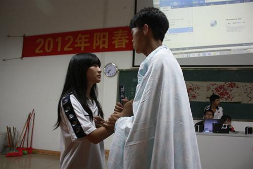 紧接着的是二班的改编剧《游园惊梦》,由二班陈映桦老师和林韵老师准备的道具把观众直拉入充满古韵的世界,只见男女主角深情对视,诉说着儒雅对白。赛后一位一班的女同学告诉她的班主任,在女主角重回现实说出那些古代时辰知识时,自己差一点就哭了出来,可见其引人入戏之深。三班的改编剧《乌龙山伯爵》更是不容小觑,邓子杰同学的搞笑反串不仅赢得了全场评委和观众的芳心,也理所当然的拿到了最佳女主角的奖项。其演出不仅道具精良,演员阵容更是强大,还有队长李泽阳和三班班主任赵栿桢的友情加盟。据三班同学说,三班班主任赵栿桢老师为了这次的道具,已经熬了几个深夜,连午休时间也在赶道具。