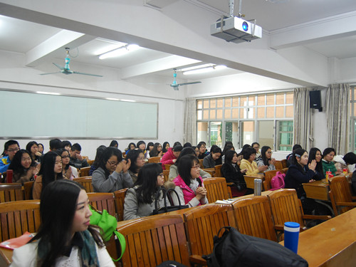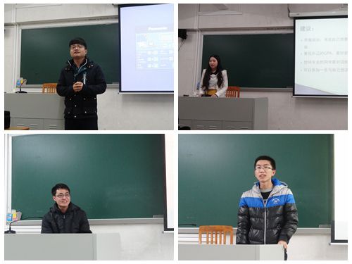 为了加深同学们对本专业的认识,解答同学们对未来规划的困惑,给同学们在求职方面的建议,在1111班桂鹏师兄的组织下,3月7日下午,2013级法英全体同学于二教110聆听了陈小虎、贾婉琳和吴俊浩三位师兄师姐的经验分享会。