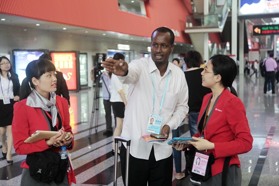 问讯处的“商英人”正在耐心地为客商解答问题