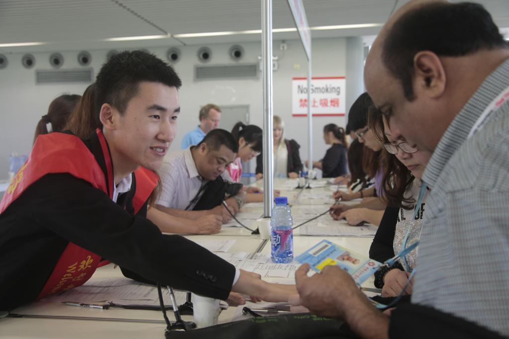 作为引导员,“商英人”一站就是一天