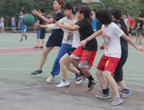 女篮组,大一“No team”队与大二“洗换平”队攻守节奏平行,步伐平行,采取的也是相同的战略部署,所以双方一开打,场面就陷入了轮回进球的局势。篮板2分,敌方扣完我方截,再扳回比分,不落一分,以至中场结束,比分10平,白热化度急剧加温。