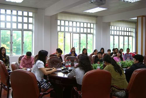 2014年5月8日下午两点,“商英竞赛人才库开班仪式”在三教318会议室正式举行。学院党委书记车小真、副院长彭玲玲,李冬云、吴思珊、张婷婷、杨文英、邓丽君、余蕾、陆璐等七位老师出席了本次开班仪式。会议由主要负责人陆璐主持。