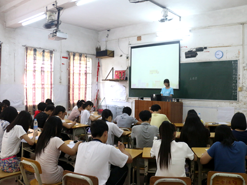 晨读刚过,三个班就开始交替进行着英语听说和英语写作课的教学。3班的写作老师韩蓉以高考背景切入主题,从高考标准讲到近年来的基础写作和任务型写作的重点。接下来更是以定居火星这个题目为同学们示范了如何写一篇优秀的议论文,授课过程中还有与学生的适当互动。虽然是初次教学有些紧张,但是队员们仍然凭借着自己学习英语的心得以及搜集来的资料为同学们提供了写作技巧。而另一边的听说课则主要以音频对话为主进行授课,但由于音频格式和音响的缘故,刚开始并不是很清楚。因此,3班的听说老师束云婕及时调整了方案,改为邀请其他队员现场为同学们模拟对话。虽说是急中生智,倒也效果显著。上午的综合英语课程可谓是挫折不断,但好在队员们能及时调整对策,互相帮助,也让前来参加夏令营的同学们感受到他们的热情和活力。