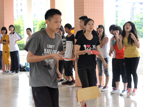 由于台风天气的影响,原本定于7月18日的趣味运动会不得不于23日下午举行,然而由于天气炎热,我们的趣味运动会地点转移到阳春一中的第4栋教学楼架空层举行。虽然天气炎热,同学们下午一过来就兴致勃勃地为趣味运动会做准备。各班的同学更是主动积极帮忙搬运物资,为我们的趣味运动会的顺利展开出了一份力。