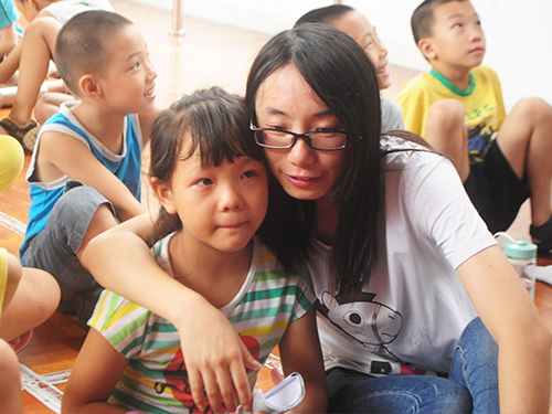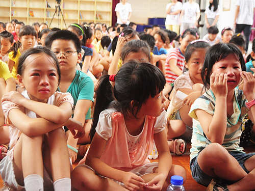 四年级B班的开场走秀,动感十足,魅力四射,让现场的气氛趋于活跃;而三年级A班的一曲《爱我别走》则让气氛开始有些转变,台下许多老师开始默然无言,静静看着自己周围仍嬉笑着的学生;二年级的诗歌朗诵《如果可以》,则让分别的气氛转而浓重,“如果可以/好想让你/还留在这里/不离去”,轻描淡写一句话,台上表演的学生眼含泪水,而台下的学生与老师纷纷眼眶湿润;到了夏令营老师上台合唱《再见》的环节时,不仅是台上的老师开始抑制不住地啜泣,台下的学生也早已哭红了眼睛。告别会进行到此时,分别的气氛已悄然笼罩了整个礼堂,沉默,啜泣,不舍别离,都意味着,这短暂的十五天,给夏令营师生都留下了弥足珍贵的记忆,这十五天建立起的感情,是课堂上的师生情,是课下嬉戏玩闹的友情,是BMW队员们对天真孩童的宠溺,是小小年纪便懂得体贴老师的关心。