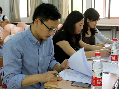 认真审阅文件的评委们