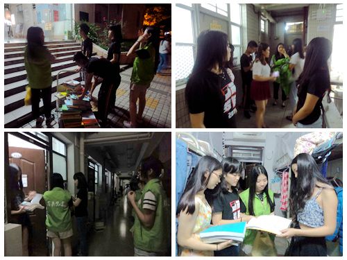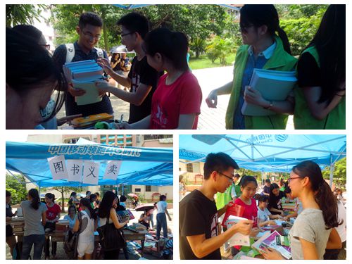 6月11号中午11点,志愿者们挥洒汗水在12栋宿舍楼前的校道前开始进行“旧书义卖”的前期准备工作。烈日炎炎下,从书籍的搬运,整理,到分类和推荐,一切都井然有序地进行着。11点半,义卖活动正式开始,在志愿者们高亢的吆喝声中,购书的同学络绎不绝,志愿者们更是不厌其烦地向同学们介绍书籍的用途,为他们寻找书籍。虽然烈日当头,志愿者们热情不减,义卖现场呈现一番热闹的景象。