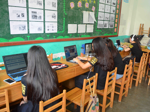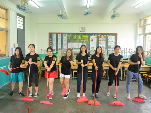 背靠三年一班的黑板报,我们把这个温馨的课室打扫得干干净净。