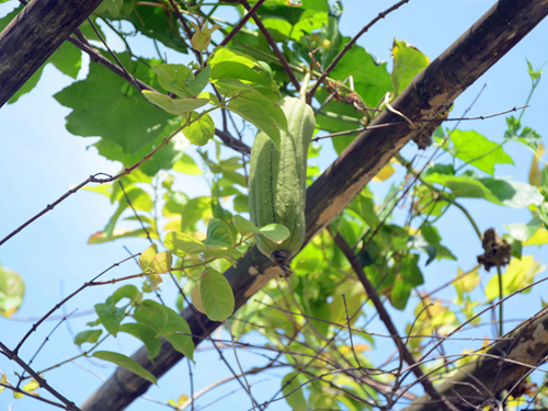 五楼的天台上种植着许多植物,迎着阳光,蓬勃生长。
