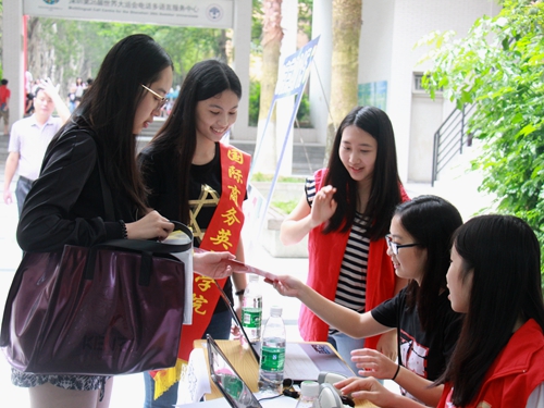 | 就如同青春电影里必会出现的那一幕 从你的手里 志愿者们接过了沉甸的行囊 面带微笑 热情地将你迎入了 微笑商英的怀抱 |