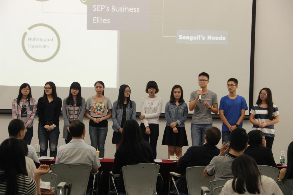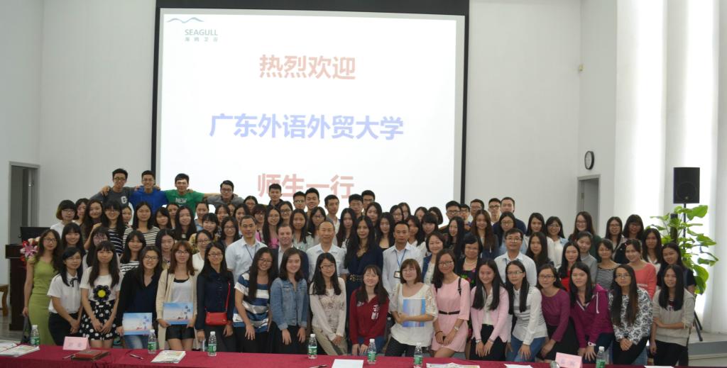 2015年11月12日,广东外语外贸大学国际商务英语学院2013级国际商务英语创新班及南校“4+0”双专业的共计110名同学赴海鸥卫浴集团参观并进行企业访问。借此契机,同学们将自己在课堂上学到的知识转化为具体的商业企划案,由海鸥集团派出的评委进行点评。