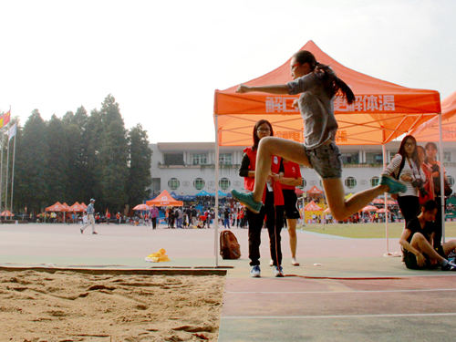 同一时刻,商英运动员也在田赛中勇敢拼搏着。参加男子跳远决赛的商英选手们半俯下身,目光专注。选手们腾空一跃,跳出的是专业,是精彩;落入沙坑,激起的是尘土飞扬,也是商英人的青春风采。在男子跳远第九名林钲员的身上,反映的是商英人顽强拼搏的精神气概。而巾帼不让须眉,商英女将郑梦莎也凭借优秀的弹跳技巧,在女子三级跳远比赛中取得了第七名的好成绩!