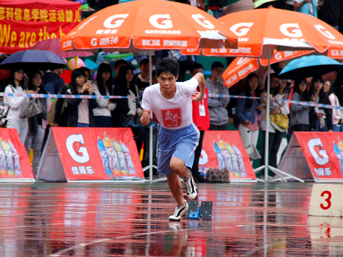 巾帼不让须眉,雨中运动女将们的精神同样让人敬佩。女子400米预赛中,商英女将李明珠同学和张茵同学表现突出,胸前“商英态度”的字样格外引人注目。她们奋勇拼搏的精神,正是对“追求卓越,自强不息”商英态度的最好诠释。最终,她们分列第三、第五名,双双挺进决赛。