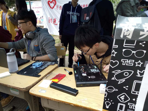 11月28日,由广东外语外贸大学国际商务英语学院Horizon青年志愿者协会主办,华南理工大学计算机科学与工程学院阳光青年志愿者服务队协办的电脑义修活动正式在广外校园里展开。当天上午9点,Horizon志愿者协会干事们在12栋校道上进行布场,华工义修队的义修志愿者们也如约而至,大家进行了任务分配和工作安排,活动按计划有序地展开。