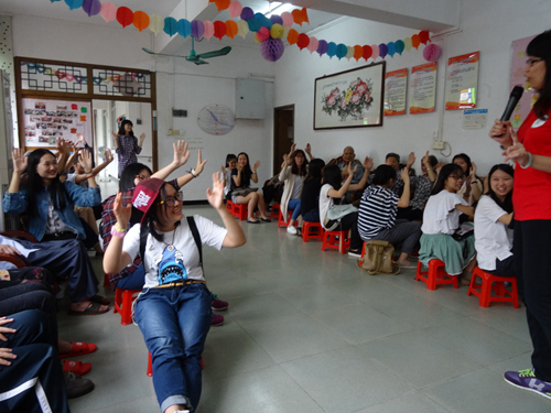 在主持人介绍完活动流程后,社工带领大家一齐做热身操”爱笑瑜伽”,志愿者和老人家渐渐变得熟悉起来,大家脸上洋溢着灿烂的笑脸。