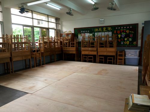 经过两个多小时的车程,Leo服务队来到了中山市石岐区博爱小学。下车后,大家迅速带着行李来到住处忙活了起来。由于住处是课室,大家首先把桌椅叠好移到四周,因为大家的通力合作,睡的地方很快就被腾了出来。清洁完地面,男生们帮忙搬来床板,经过又一次的完美合作,三间简易宿舍成了形,原本稍显拥挤和闷热的课室立马变得敞亮了起来,拼在一起的床板还让大家有了温馨的感觉。