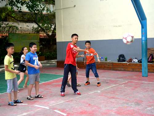 时间就在小朋友的欢呼声、加油声与欢笑声中一分一秒地流逝着,趣味运动会也已接近尾声。高年级组正在进行最后一项游戏:升级版躲避球。在划定的界限里,两组分开站定,一边扔球一边躲避,;在每组都有一个密定的King或者Queen,如果King或者Queen被砸到,那么全组人就直接淘汰;被砸到的或者跑出规定范围的组员将被淘汰。整个场地都是他们的笑闹与奔跑声,以及来自班主任与班导们时不时的提醒声“注意安全啊”“砸的时候不要太大力”“跑的时候慢一点”。举办这种大型活动,玩乐与开心固然重要,可是安全更需要被强调,小朋友们不受伤,才能玩得更开心。