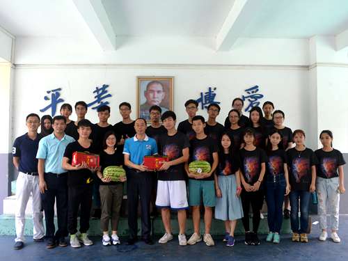 早上11点,商英学院院长郭桂杭、党委副书记张林茂、团委书记万东方以及16级辅导员莫小俊亲临博爱小学。同学们精心准备了国学诗朗诵,兴奋地给领导们表演。此外,同学们还活学活用,把手工课堂学会的徽章送给了领导们,感谢商英学院多年以来对博爱小学教育的支持。之后,领导们亲切地与Sunkids队员们交谈,询问队员们在博爱小学的具体生活情况。队员们坦诚地说教学活动中难免会有疲劳,但是同学们的可爱往往让大家瞬间释怀。炎炎夏日,领导们给队员们送了西瓜和清凉饮品。在此,Sunkids全体队员衷心感谢商英学院领导们的体贴和关怀!